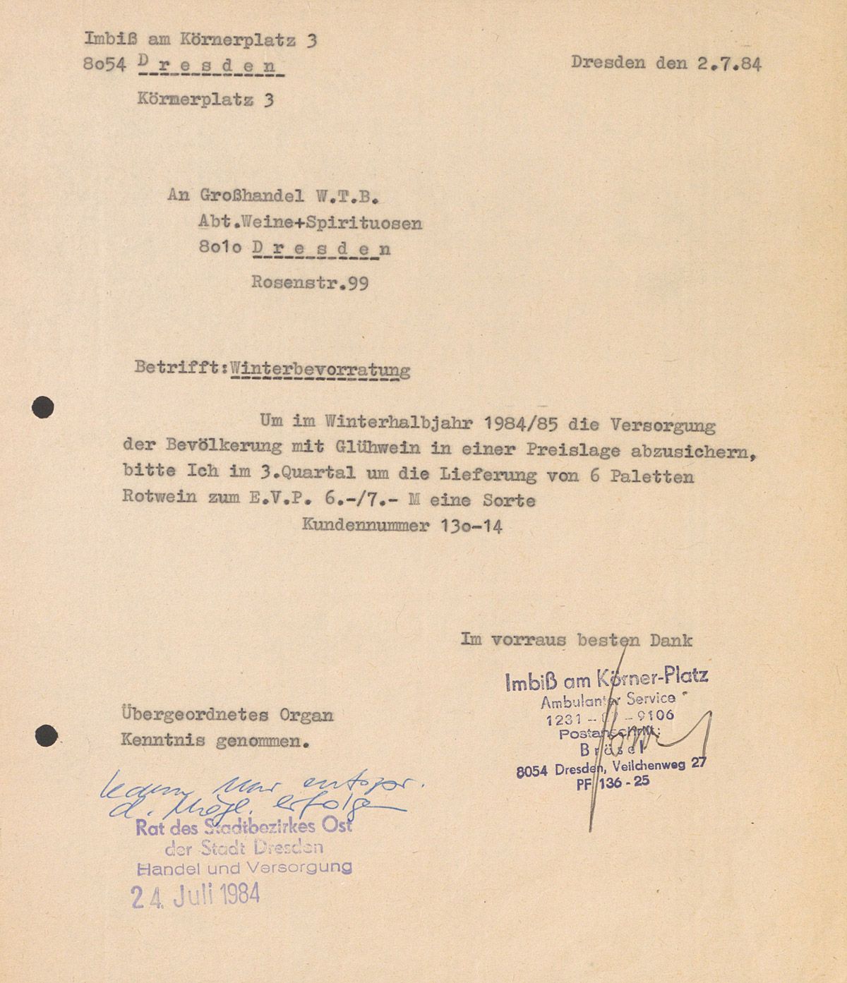 - 1949 Nach der Gründung der HO übernahm wahrscheinlich 1949 hier den Betrieb.